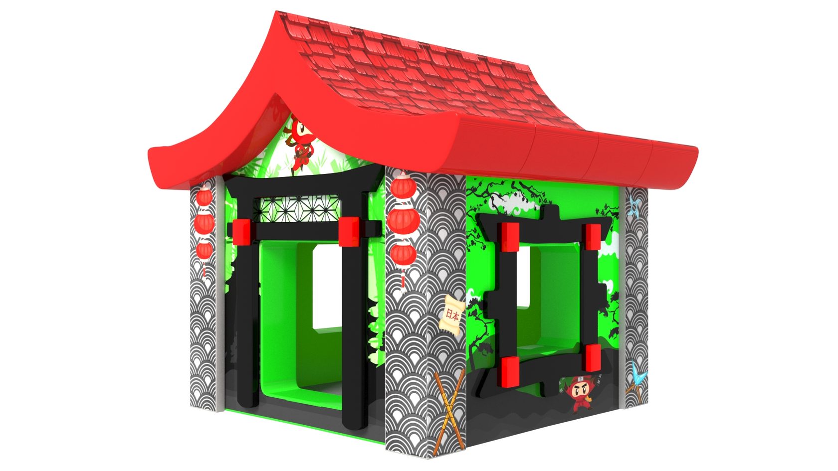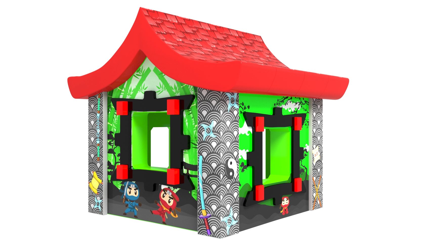 Такой вариант домика станет отличным дополнением любого игровой зоны, или даже его можно использовать как самостоятельный аттракцион.