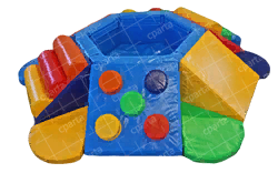 Длина: 3 м Ширина: 3 м Высота: 1 м В базовую комплектацию домика входит поролоновый мат и игровые элементы