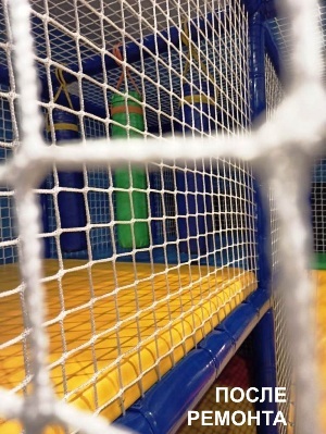 В процессе ремонта были изготовлены и заменены изношенные игровые и декоративные элементы, также произведена полная замена сетки, защитных рукавов и хомутов детского игрового лабиринта.