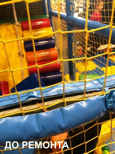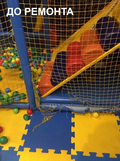 Из-за высокой нагрузки и большой проходимости детской игровой комнаты сильно износилось покрытие многих игровых элементов лабиринта, в некоторых частях была разорвана сетка, были утеряны хомуты в следствии чего защитные рукава отошли от каркаса.
